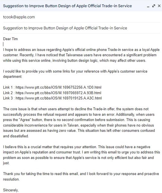 推 fangjoe24 : 有寫信反應就是推 10/12 13:03