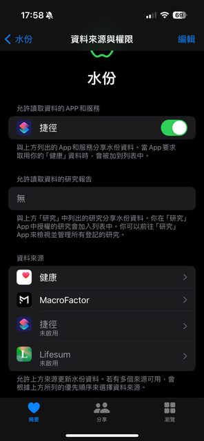 進到健康的水份把資料來源欄位的捷徑勾選後