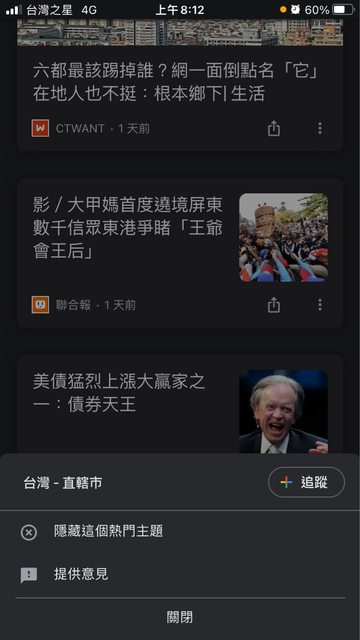 點旁邊三個小圈只會問新聞中的人事物要不要隱藏或追蹤