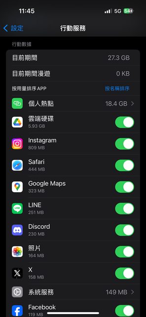 推 mp60707: +1 要出國 剛好在計算流量 發現明明沒開熱點 但流量一直 12/11 18:16