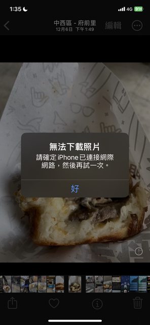 是一個月前的照片就沒辦法讀取(如圖)確定行動數據是有網路的,相簿設定那裡也有開啟