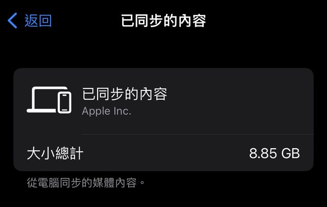 我原本想說是沒傳成功嗎?但卻在儲存空間中找到「已同步的內容」8.85GB,恰好是我檔案