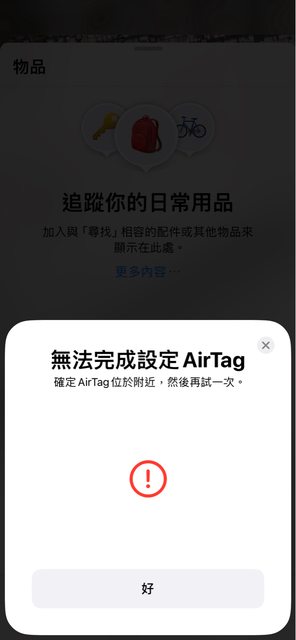 偵測到AirTag,但是卻完全連接不上…..我第一次連接的時候很快就連接成功了。