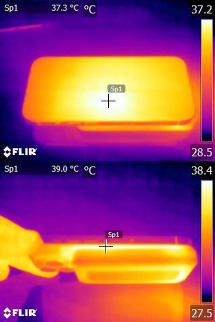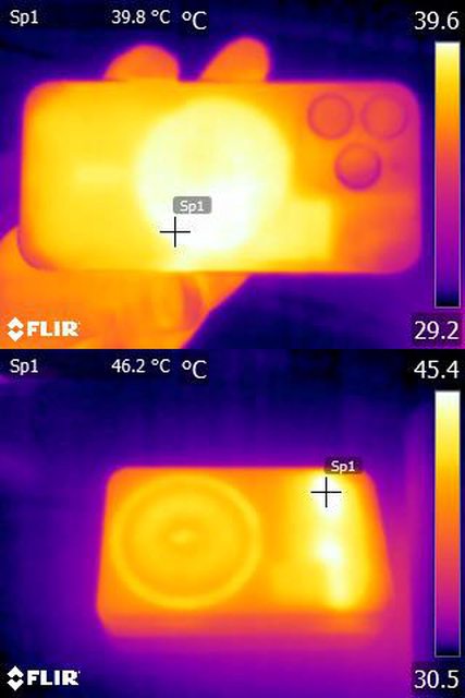 ▼對Apple iPhone 15 Pro無線充電30分鐘後的紅外線熱影像圖,Apple iPhone 15 Pro電