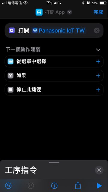 目前想要用「打開app」再控制螢幕上的開關鈕,卻不知從何下手去設定控制,想