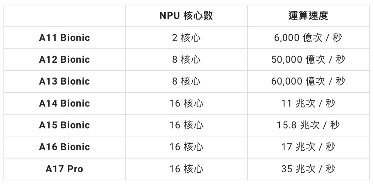 → kivan00: 要看有什麼殺手級應用 A17 Pro的NPU效能對比A16爆增2倍 03/18 13:36
