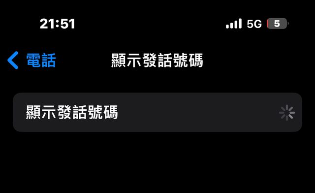 在設定的電話裡面,有一個選項是顯示發話號碼,但不知道為什麼最近點進去都在轉圈圈