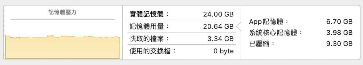 → hyuan: 只看記憶體用量不太準 macOS的邏輯基本上是有多少用多少 06/09 21:27