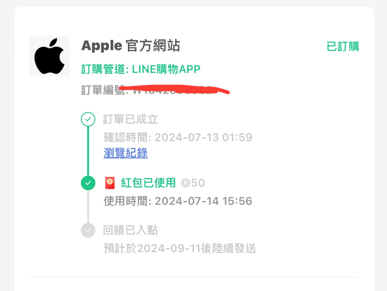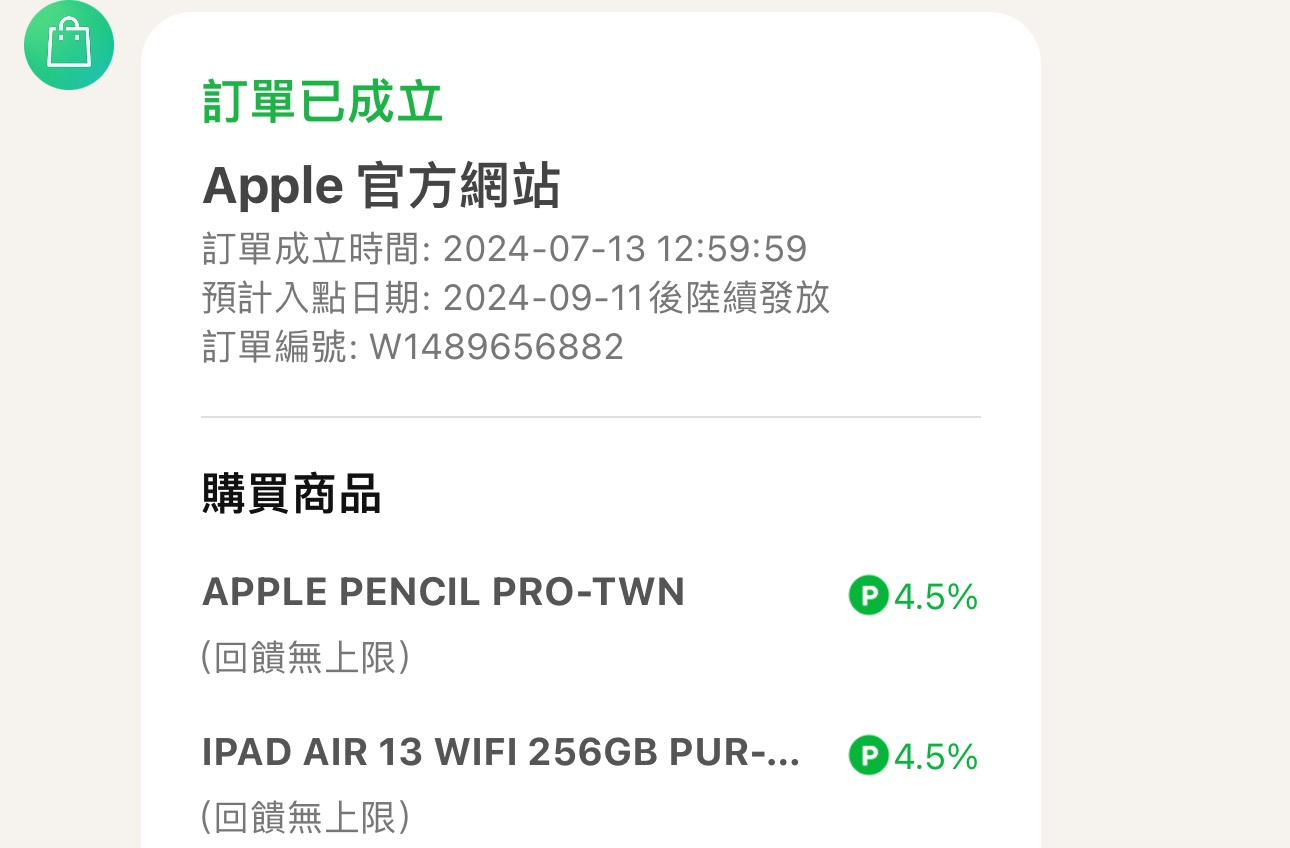 → mixmaster: 有人已經有收到LINE訂單成功通知? 07/14 09:07