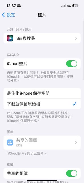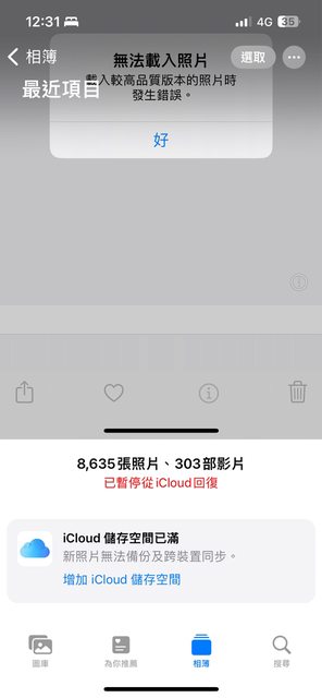 「無法載入照片」,以前有開啟過「最佳化iPhone 儲存空間」,但後來就關掉了,然後