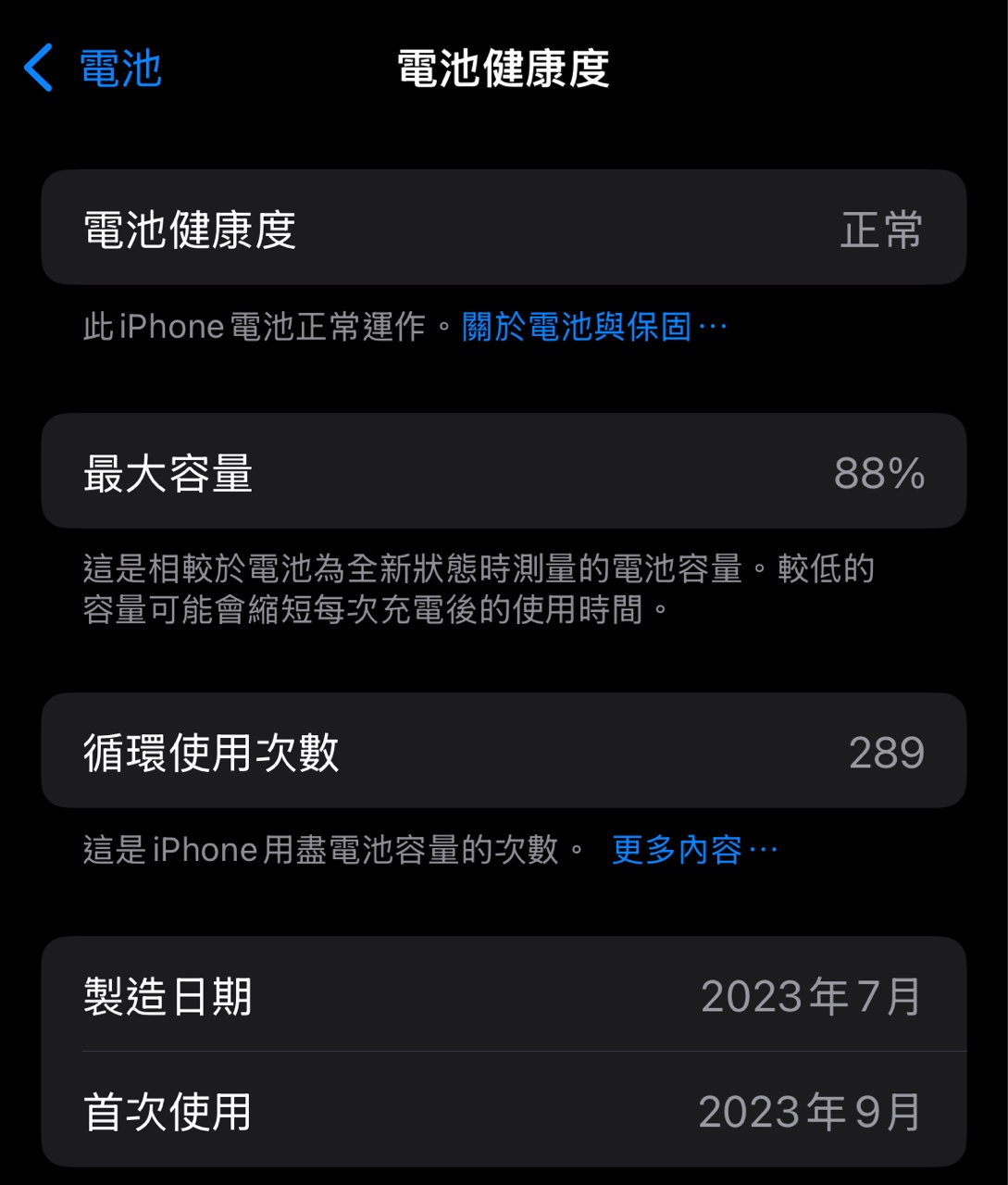 → maxw1102: 一樣用10個月的13pro 健康多都還有93-94 88真的嚇到我了 08/02 16:19