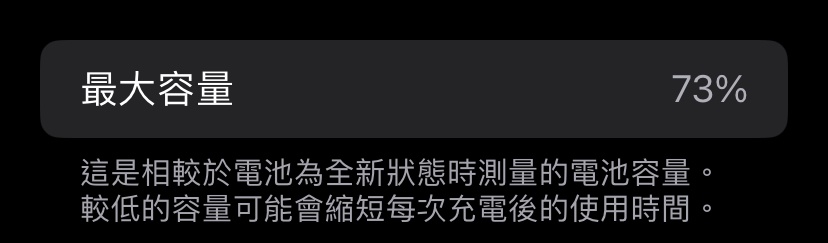 推 mermaid13: 2019年購入XR,2023年6月健康度81%,現在80% 08/28 12:19