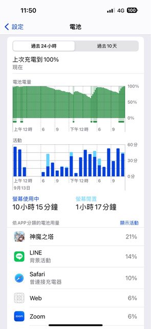 : 還未滿一年,手機使用頻率應該算高,電池健康度還有88%,我本身不習慣帶行動電源,