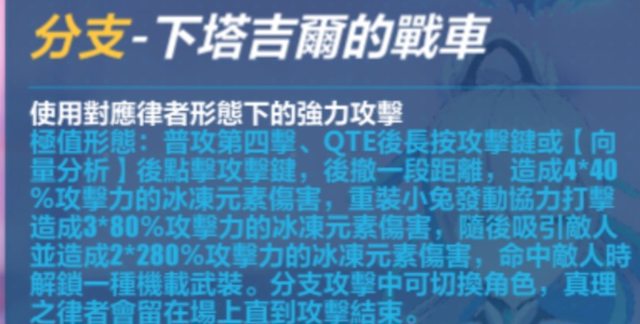 所以一般有專武的話,通常不會開QTE,而是用:按下專武(1) -> 閃避技能(2) -> 分支(3)