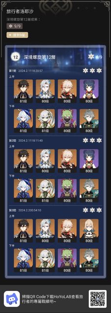 : 本來之前也都是休閒玩,深淵隨性,可是去年年底的時候,深淵12層每層都突然可以穩穩