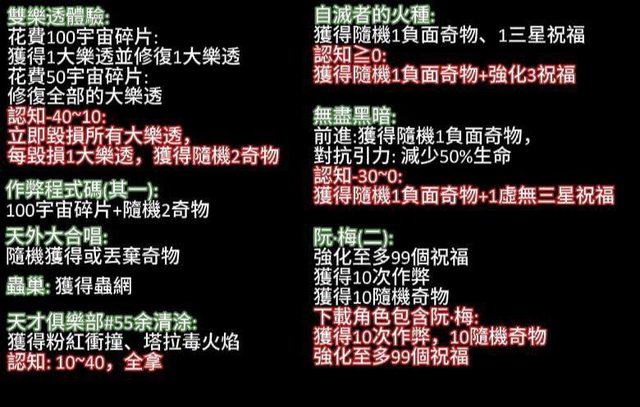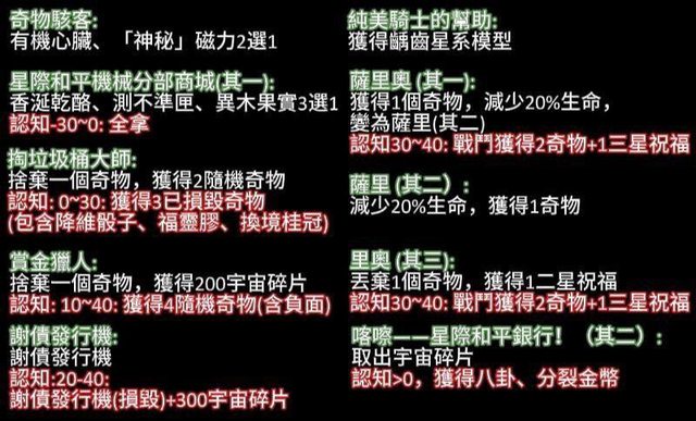 最後附上所有奇物相關的事件選項
