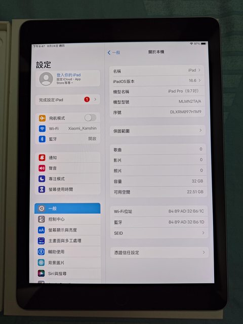 欲售物品:iPad Pro 9.7 32GB Wifi版 黑