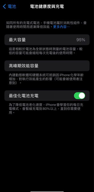 電池健康度:95% 使用約1年