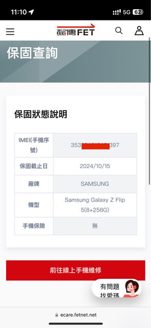 保固日期:未拆預計保固2024/10