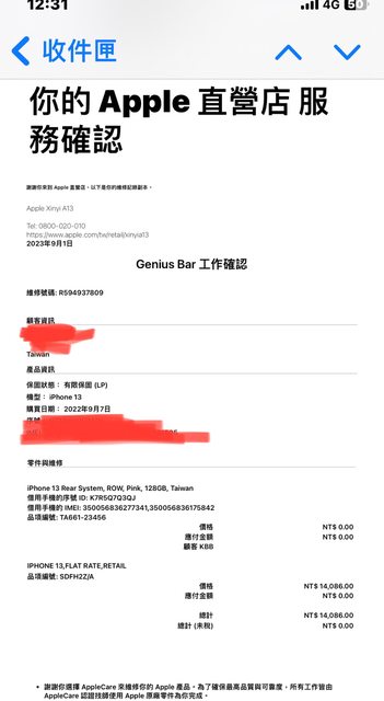 因NFC感應故障 無法apple pay還在保內今天剛至Apple更換新零件所以保固延長 除相機