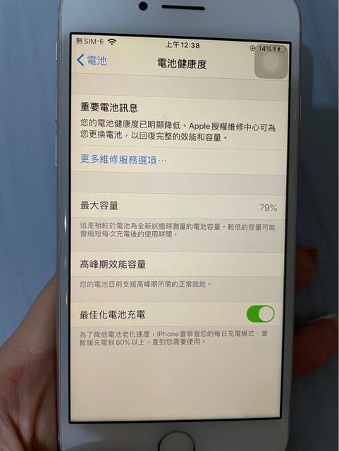 物品狀況:8成新,無殼,電池健康度79%,沒有配件,沒有保護貼