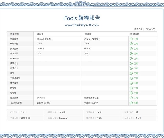 實品圖片:iOS版本17.0.1,電池健康度73%