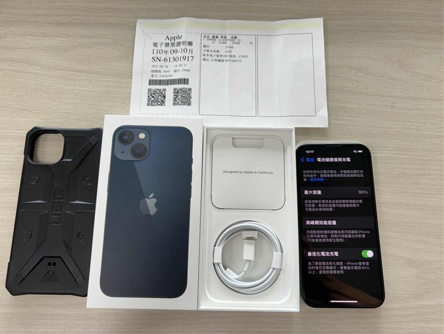 盒裝內含:原廠盒子、充電線、UAG手機殼、購買證明