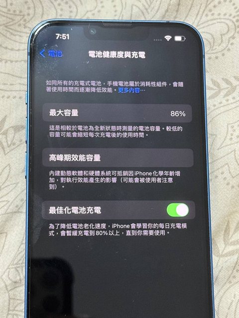 物品狀況:電池健康度86%