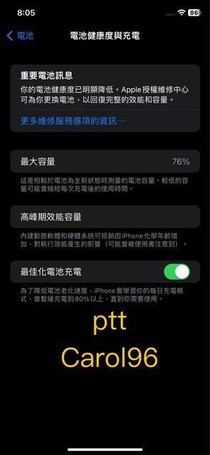 電池健康度76%