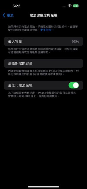 電池健康度93% 沒使用過AOD 螢幕顯示和其他功能一切正常
