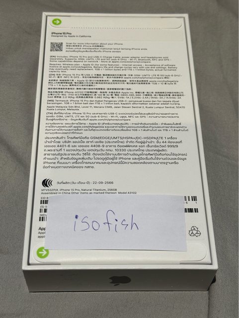 欲售物品:iphone 15 pro 256g 原色