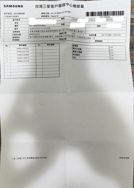 2022/7/13因螢幕反白,回原廠更換螢幕、電池、充電座、主鏡頭