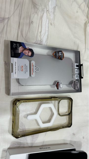 盒裝內含:完整盒裝,內附充電線(未使用),uag的MagSafe透明保護殼
