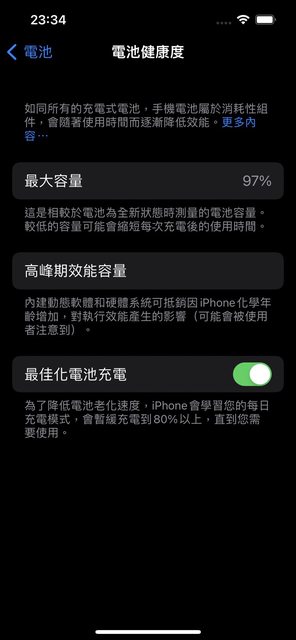 全機功能正常,無明顯損傷,電池健康度為97%,平常沒有玩遊戲、看影片等等。