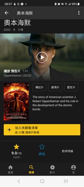 推 geniusw : 奧本海默有機會啊 imdb 對人文情懷情有獨衷 07/21 09:30