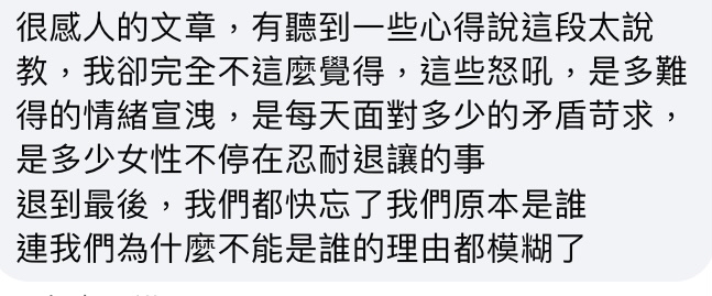 少女生對那段也很有感,我不覺得被說教, 而是姊妹淘互吐真心話,"這些無奈的怒吼是多難得的