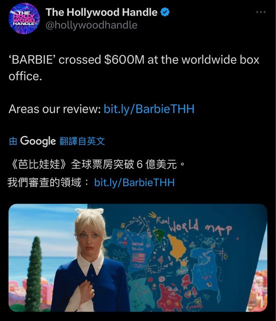 推 cocojohn111 : 白人大美女演芭比太不正確了吧 票房會說話 07/29 10:09