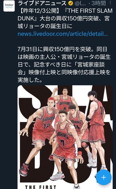 推 wangsan : 目前灌籃的全球票房已經2.8億美元,大約370億日幣 08/01 21:00