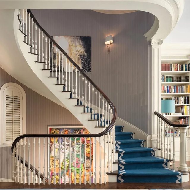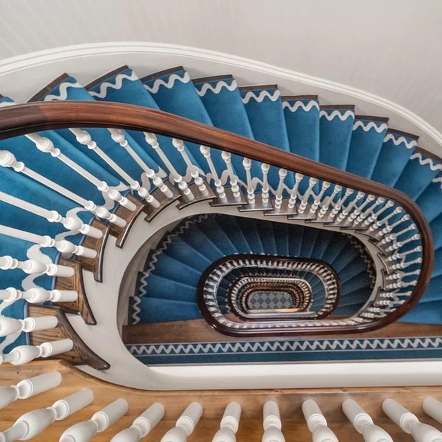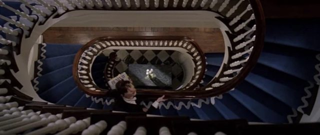 幕Anne Hathaway送書到Miranda住家,走上樓梯的經典畫面,蜿蜒向上的階梯,且我周圍