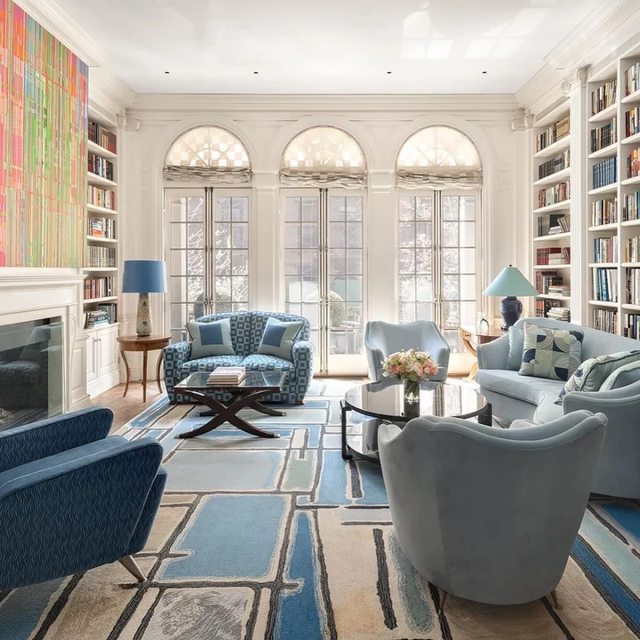 配置有豪華書櫃與壁櫥的客廳,並且格局配有7間臥室、10間浴室、及通往花園的地下室