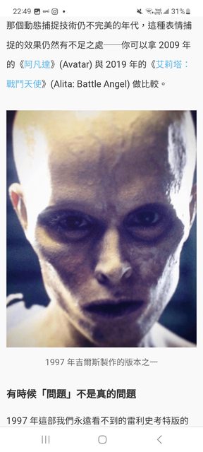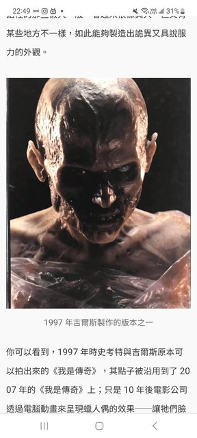 可以跟1997年雷利史考特被腰斬的版本作比較,那時是用真人化妝,效果比2007年版本好得