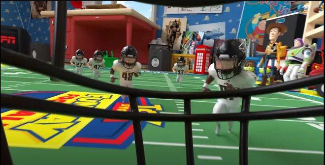 這場名為「Toy Story Funday Football」的轉播,將以玩具總動員的世界觀、美術設計、