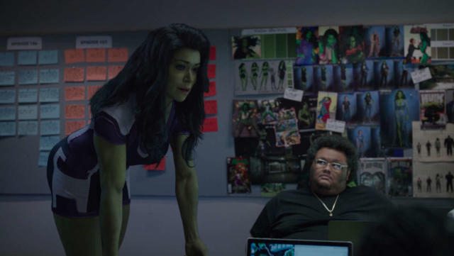 例如在原來的《律師女浩克》故事中,女主角變身為女浩克的回憶發生在第八集、也是倒