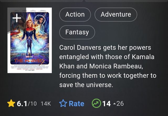 → Reze : 回升到快9了,驚奇隊長2也是這樣,一開始有很多酸 11/11 16:23