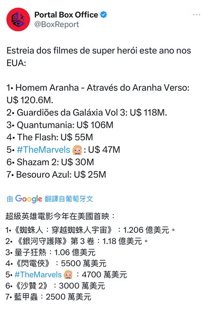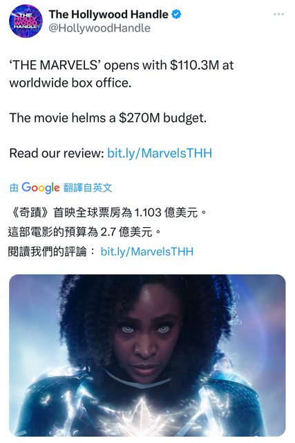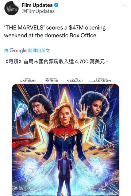 推 nobady98 : 不是有人說比閃電俠低的話,要去看驚奇2幫忙救票房 11/13 08:05