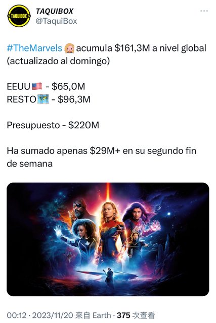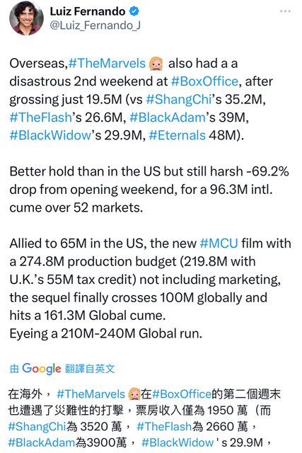 推 holyseraph : 驚奇隊長2第三週也就是本週, 11/20 11:53