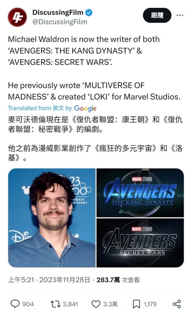 → CavendishJr : 他在洛基是主創,沒寫過幾集劇本,下來寫就是奇異2 11/28 10:38