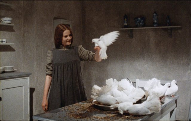 這樣回想起來從 1950 迪士尼版《仙履奇緣》至今八十餘年多次翻拍的《灰姑娘》熱潮,有多少是基於法版已不言自明,也許來看這部 1989 西德版的重點就是「終於有一部格林版改編」、讓我們看看格林兄弟的德國鄉野殘酷童話視覺化後是何風景。話說二十年前日本一時風行「殘酷童話」紅到台灣來,《灰姑娘》不但有「削足適履」還有「飛鴿啄眼」都是限制級血腥!不過長大我再看回格林原版雖也有這些情節,卻宛如 18-19世紀現實日常般毋需腥羶獵奇;這種看來日常細想炎涼的感覺倒也忠實呈現在這部 1989 西德版中,仍是拍給孩子看的只是孩子故事也未必夢幻。
