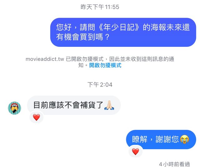 推 cuteemo : 年少日記海報在店面也完售了嗎?可以私電癮訊問問 12/13 18:39