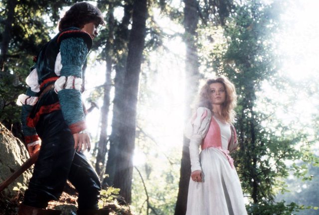 而且這睡美人城堡還被玫瑰花叢詛咒封印密不透風!許多王子自命英雄前來砍劈還死在玫瑰刺下!當然過了百年還是有位王子遠道而來、剛好詛咒期限已過算他好運 XD 一吻拯救公主歡喜成親... 這「一吻救美人」在德國傳統還有更早的「齊格飛吻醒布倫希爾德」、到 19 世紀崇尚童話傳說的浪漫主義年代更迷倒無數少年男女!到 20 世紀隨著迪士尼動畫傳頌全球塑造了溫雅婉約經典形象後、如今 21 世紀它的「待救女性」形象塑造已廣受女性主義批評... 不過這 1990 捷克版顯然對這爭議早已了然於胸,故事基本精神「愛破除詛咒」仍是必要,但過程要增加情義與自主。
